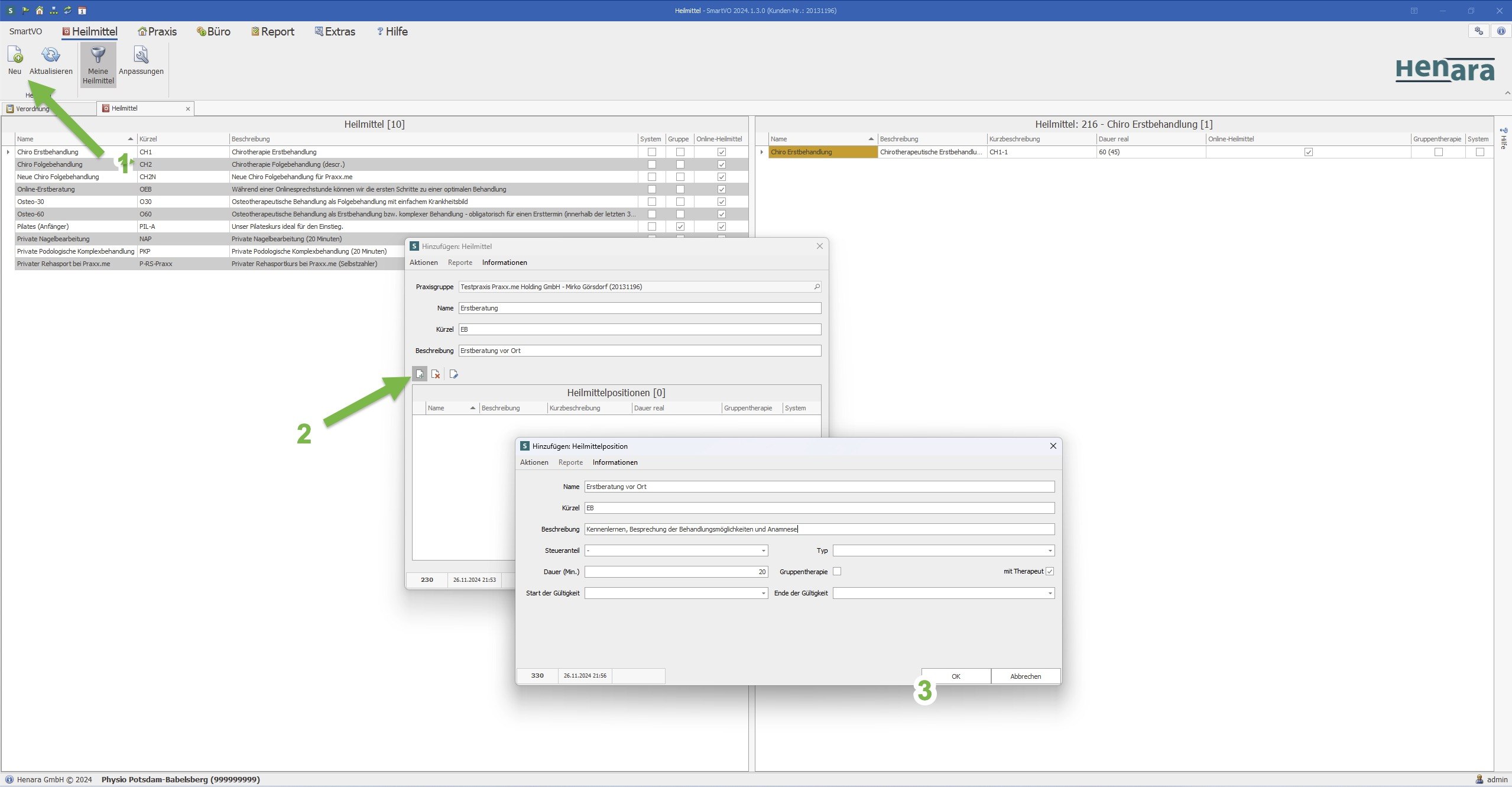 Die erste Aufgabe in diesem Schritt ist die Anlage von Heilmitteln, genau genommen der Heilmittelpositionen.