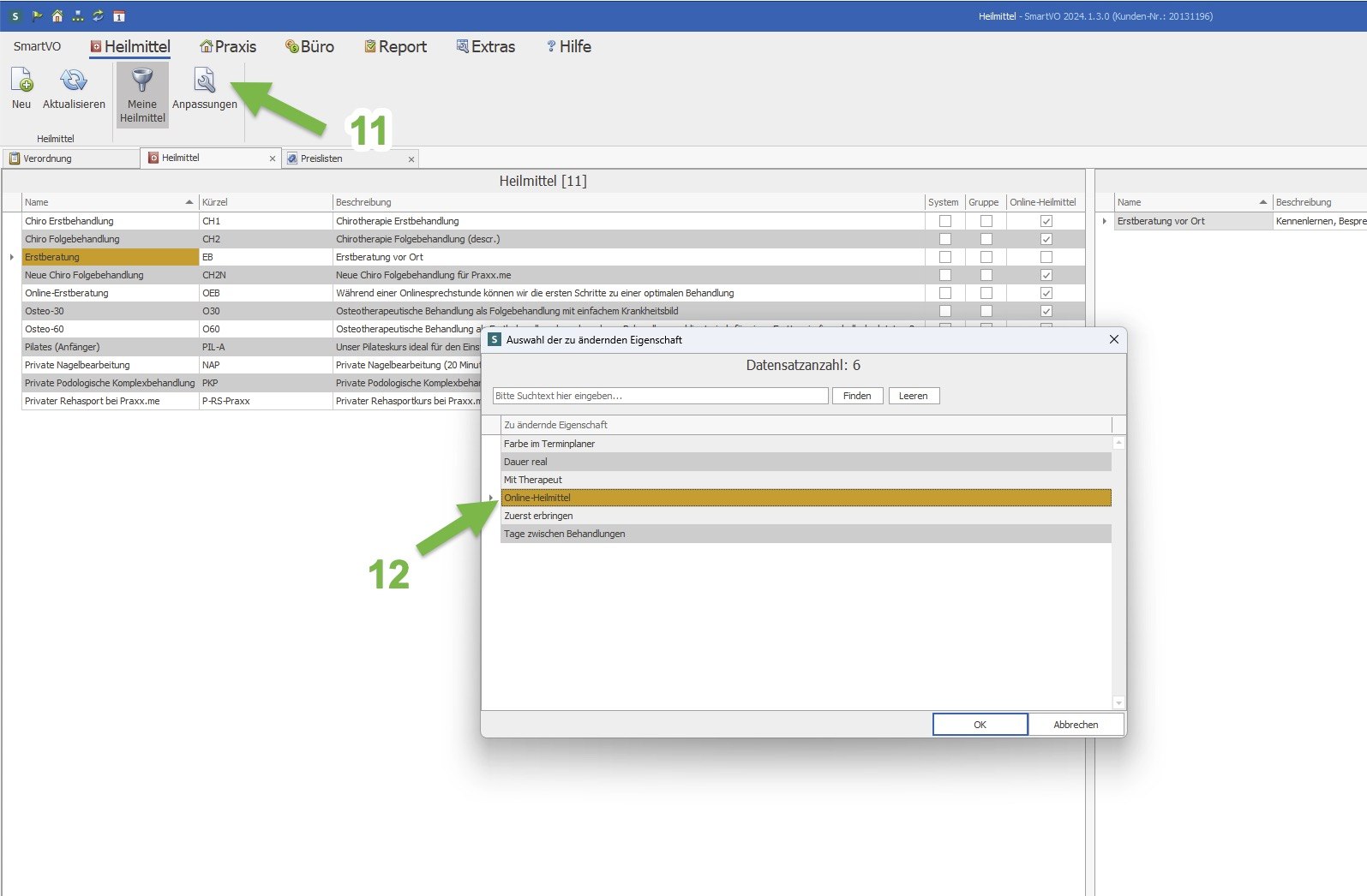 Heilmittel werden erst als Angebote in Praxx.me aktiv, wenn diese als „Online-Heilmittel“ markiert wurden. Damit steuern Sie den Umfang Ihres „Schaufensters“ aller buchbaren Angebote in Praxx.me Express und Portal.