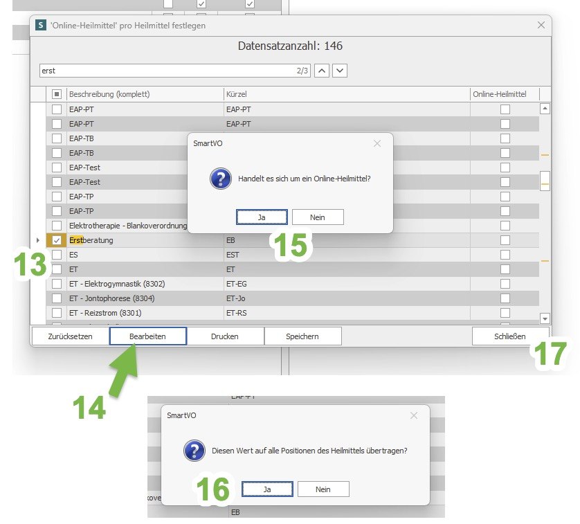 Screenshot: Auswahl eines Heilmittels zur Anpassung als Online-Heilmittel in SmartVO