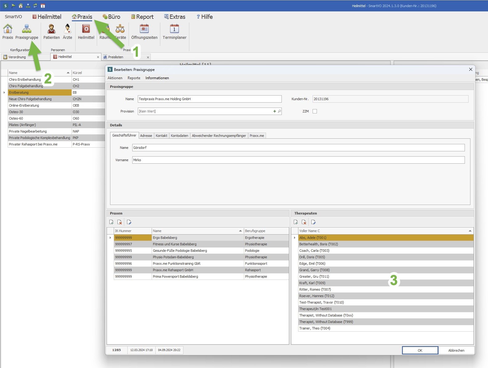 Screenshot: Zuordnung von Online-Heilmitteln zu einem Therapeuten in SmartVO
