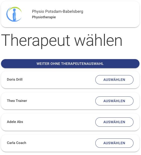 Screenshot: Beispiel für die Präsentation verfügbarer Therapeuten in Praxx.me Express